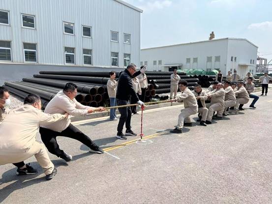 暖風(fēng)攜花開,春意正濃時(shí)。為慶祝“五一”國際勞動(dòng)節(jié),進(jìn)一步豐富職工的業(yè)余文化生活,全面提振職工精氣神,展現(xiàn)公司全體職工團(tuán)結(jié)奮進(jìn)的精神風(fēng)貌,增強(qiáng)全體職工的凝聚力和向心力。4月27日,興華科技公司舉辦“五一”職工拔河比賽,本次活動(dòng)共10支代表隊(duì)參賽。同時(shí)為了讓外地的同事一同參與到本次活動(dòng)中來,還特意組織了《職業(yè)病防治法》有獎(jiǎng)線上問答活動(dòng)。 在拔河活動(dòng)中,參賽隊(duì)員熱情洋溢,興奮地討論著比賽技巧,為比賽出謀劃策。隨著裁判員一聲哨響,拔河比賽正式開始。這是一場(chǎng)團(tuán)隊(duì)精神的比拼,為了集體榮譽(yù),參賽選手凝神聚力,重心下移,勢(shì)如猛虎,寸土必爭,以力拔山兮氣蓋世的氣勢(shì),為勝利拼盡全力。在勝負(fù)難分的僵持階段,大家咬緊牙關(guān),握緊韁繩,堅(jiān)持到底。每一個(gè)參賽隊(duì)員都全力以赴,為中間漂移的紅繩屏氣懾息。賽場(chǎng)外,啦啦隊(duì)富有節(jié)奏的加油聲、吶喊聲、助威聲,充斥在賽場(chǎng)上空,久久回蕩。經(jīng)過緊張而激烈角逐,決出了前四名隊(duì)伍。 通過此次活動(dòng),不僅讓大家放松了緊張的心情,緩解了工作壓力,而且進(jìn)一步促進(jìn)職工以“拔河精神”積極投身到自我凈化、自我完善、自我革新、自我提高的平臺(tái)上,投身到勤于學(xué)習(xí)、勇于創(chuàng)新、甘于奉獻(xiàn)、敢于卓越的征途上,投身到不忘初心、不負(fù)韶華、不懼挑戰(zhàn)、不辱使命的“三個(gè)德邦”的企業(yè)愿景上。