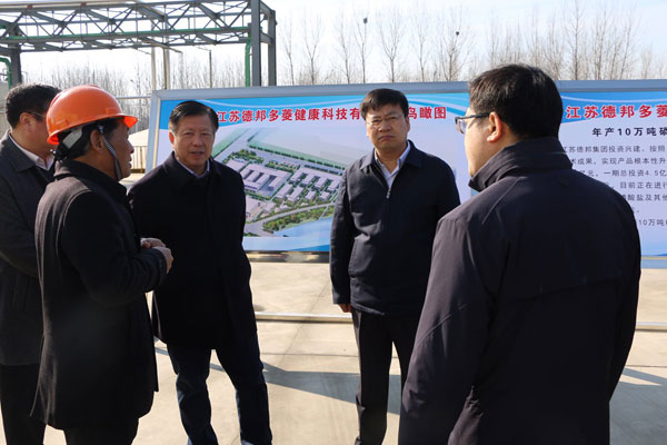 3月8日上午,市委常委、市長(zhǎng)方偉攜市委秘書(shū)長(zhǎng)韓尚富、市發(fā)改委、市工信局、市自然資源和規(guī)劃局、市生態(tài)環(huán)境局主要負(fù)責(zé)人及東海縣領(lǐng)導(dǎo)相關(guān)領(lǐng)導(dǎo)一行蒞臨江蘇德邦多菱健康科技有限公司廠區(qū),督查市級(jí)重點(diǎn)項(xiàng)目推進(jìn)工作,并與集團(tuán)公司董事長(zhǎng)趙祥海進(jìn)行親切交談。在聽(tīng)取集團(tuán)公司董事長(zhǎng)關(guān)于產(chǎn)業(yè)布局、項(xiàng)目建設(shè)和經(jīng)營(yíng)效益等相關(guān)情況匯報(bào)后,方偉勉勵(lì)企業(yè)要堅(jiān)定發(fā)展信心、樹(shù)立高遠(yuǎn)志向,大力推進(jìn)創(chuàng)業(yè)創(chuàng)新,頑強(qiáng)拼搏,不懈努力,推動(dòng)企業(yè)做大做強(qiáng),力爭(zhēng)項(xiàng)目早日建成投產(chǎn),為地方經(jīng)濟(jì)發(fā)展再做新貢獻(xiàn)。他強(qiáng)調(diào),東海縣相關(guān)部門要進(jìn)一步加大幫扶企業(yè)力度,抓緊落實(shí)企業(yè)相關(guān)手續(xù)的辦理,推動(dòng)有關(guān)項(xiàng)目早日建成投入運(yùn)行。同時(shí)他也表示,將抓緊推動(dòng)德邦老廠區(qū)地塊的掛牌出讓工作,為德邦的整體搬遷項(xiàng)目建設(shè)提供支持。