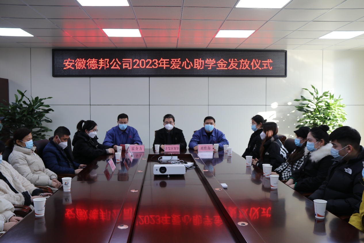 公司總經理助理霍介方主持愛心助學金發放儀式并宣讀受助學生名單,公司黨總支書記劉默海代表公司向出席愛心助學金發放儀式的各級領導表示感謝,向受助學生和家長表示熱烈的祝賀,并對受疫情影響延期舉辦2022級新生助學金發放儀式表達歉意。20年來,安徽德邦公司每年堅持對本公司職工子女考上高等院校的,發放愛心助學金。2018年后,為感謝企業周邊皖化社區、田東社區、朝陽社區居民多年來對企業成長和發展的關心和支持,將這一活動擴展到周邊三個社區的居民子女。這一活動,充分體現了德邦公司回饋社會關心支持,打造和諧鄰里關系的美好愿望。同時體現了德邦公司全體干部員工對每年考入高等院校的莘莘學子關心關愛之情。本次受助學生48名,共發放愛心助學金79000元。
