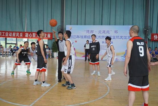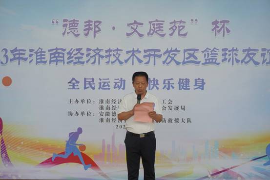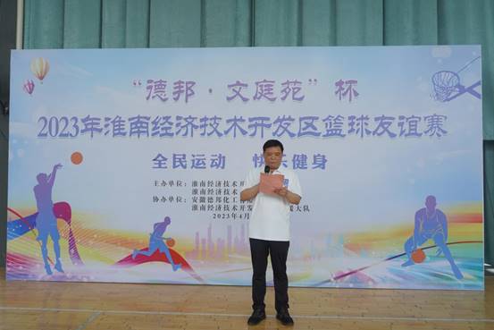 為進一步加強經開區各基層工會交流互動,凝聚高質量發展的強大合力,418日下午,為期5天的“德邦·文庭苑”杯2023年淮南經濟技術開發區籃球友誼賽在區消防大隊籃球館舉辦。此次活動由淮南經濟技術開發區總工會、社會發展局主辦,安徽德邦化工有限公司、開發區消防救援大隊協辦,比賽共有八支代表隊參加。淮南市經開區黨工委委員、紀檢工委書記朱英魁、安徽德邦化工有限公司黨總支書記劉默海出席開幕式并致開幕詞,安徽德邦籃球隊隊員朱立超代表全體運動員宣誓。